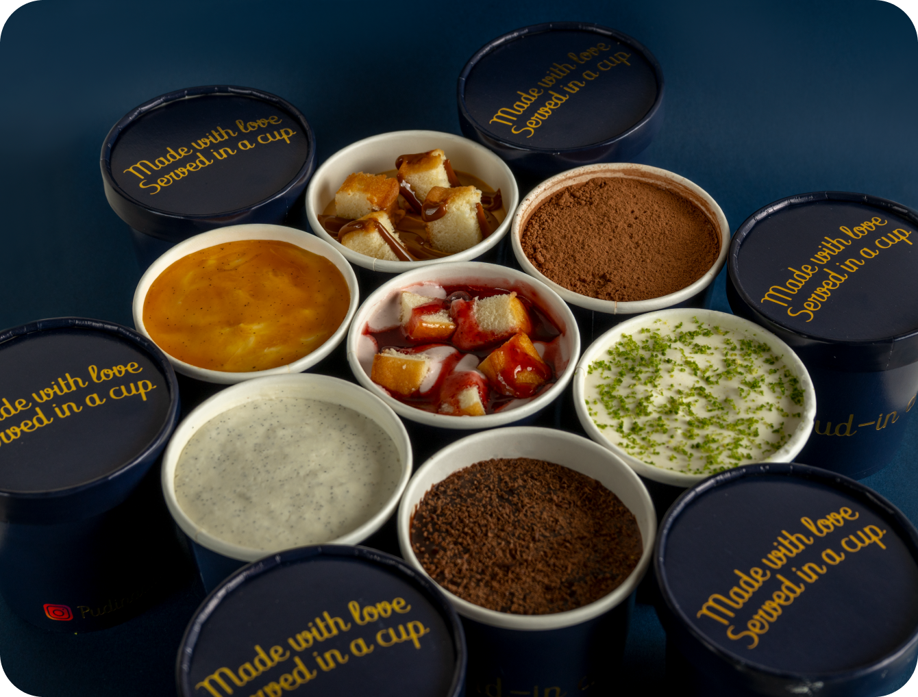 To offer desserts that go beyond the conventional, crafted with the highest quality ingredients and presented with a sophisticated aesthetic. At PUD IN A CUP, we aim not only to delight the palate but also to spark emotions through innovation, elegance, and detail, creating memorable experiences in every bite.