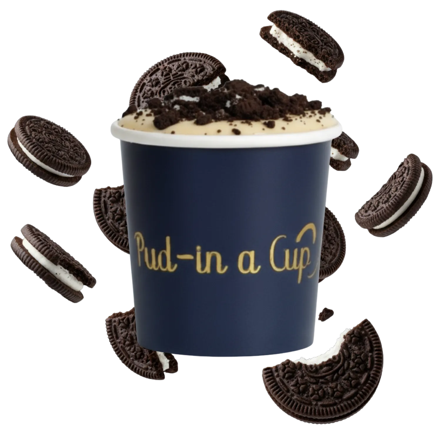 Experience the timeless charm of our Cookies & Cream pudding. Smooth vanilla cream meets real Oreo® cookie pieces in a dessert that’s both comforting and luxurious.