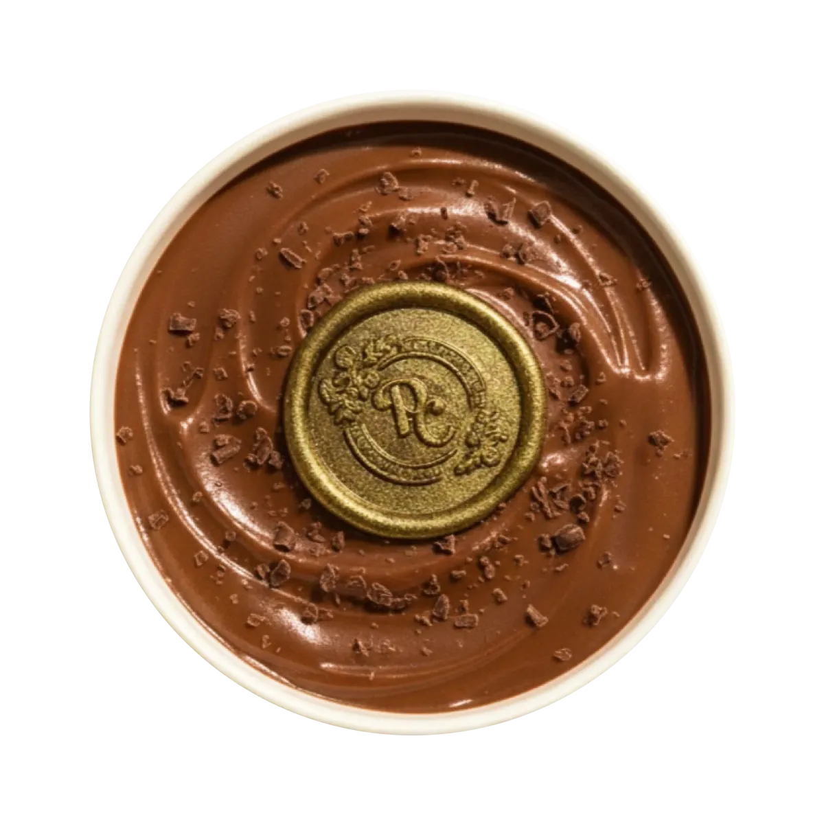 Topped with finely shaved dark cocoa chocolate, this pudding delivers the perfect harmony of flavor and elegance.